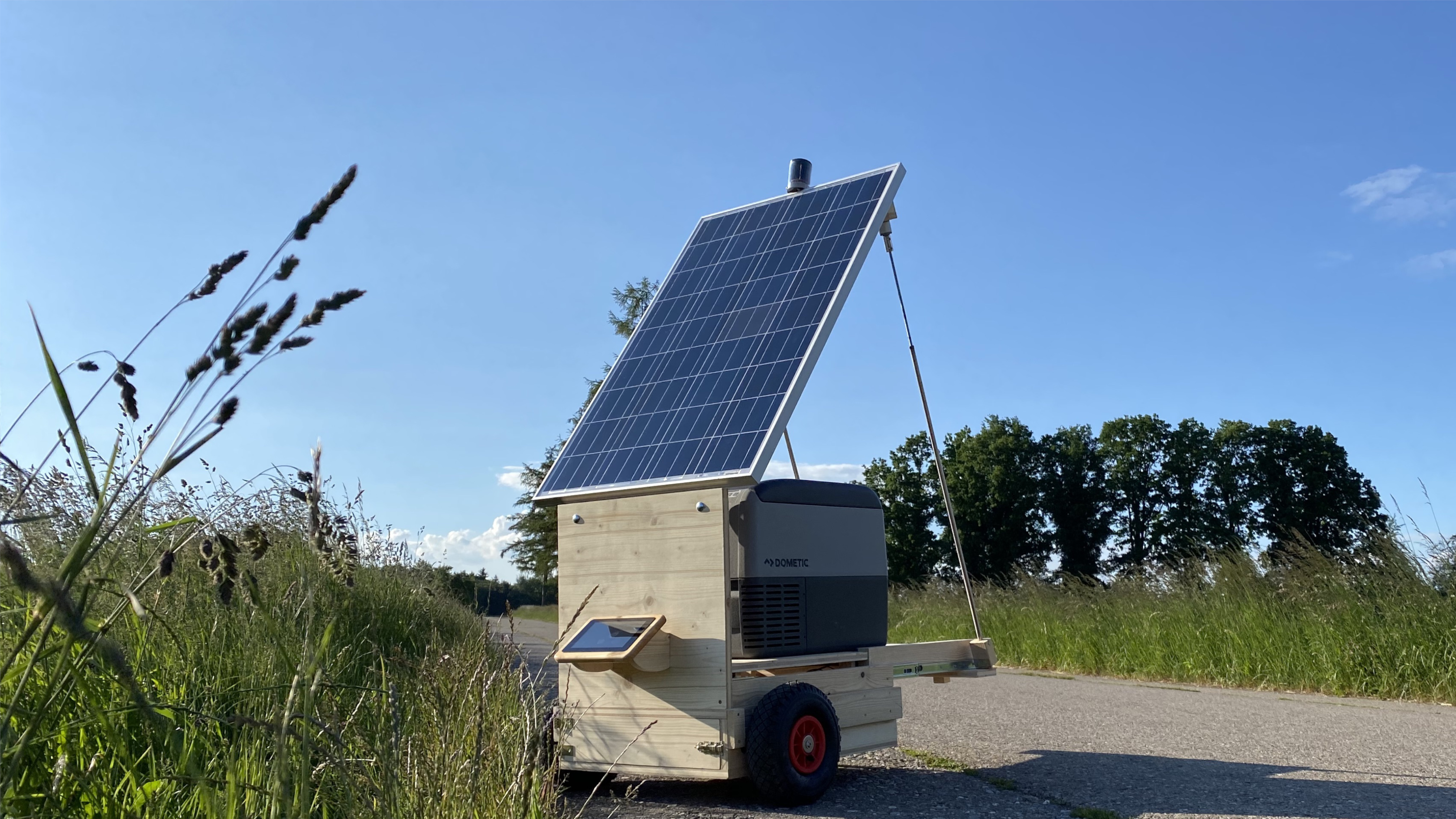Der SDF ist ein Kühlschrank, der in Gebieten mit schwacher Infrastruktur eingesetzt werden kann. Das kann er, weil er sich mithilfe seines Solarpanels selbständig mit Strom versorgen kann. Um, die Stromversorgung den ganzen Tag lang sicherzustellen, richtet sich der SDF autonom mittels 4 Fotowiderständen, die von einem Arduino ausgelesen werden, aus. Überschüssige Energie wird in einem Bleiakku gespeichert. Mit diesem Bleiakku, der eine Kapazität von 50Ah bei 12V hat, kann der SDF mit seiner sparsamen Kühlbox, die gerade einmal 0,67Ah/h bei 12V verbraucht, für einige Stunden versorgt werden. Um Kollisionen mit Hindernissen zu vermeiden, verfügt der SDF über Ultraschallsensoren, die ebenfalls von dem Arduino ausgelesen werden.